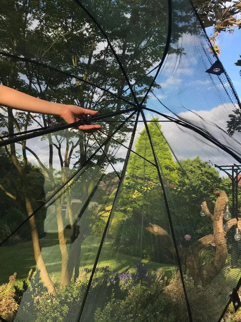 Keep bunnies from nibbling your lettuce, moths from laying eggs on your cabbages, and birds from stealing your berries! Ingenious design pops open and closed just like a rain umbrella, the “handle” pushes into the ground and voila â instant protection for tender young plants. Can also be used to give a little shade from scorching sun.